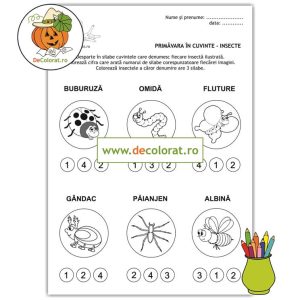 Fișă de lucru cu insecte – despărțirea în silabe