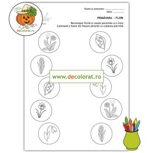 Planșă de colorat – Vaza cu brândușe – florile primăverii