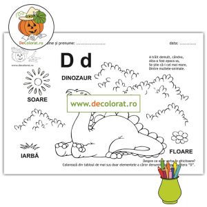 Litera și Sunetul D – fișă de lucru cu ghicitoare (dinozaur)