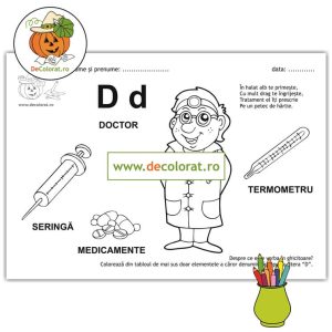 Litera și Sunetul D – fișă de lucru cu ghicitoare (doctor)