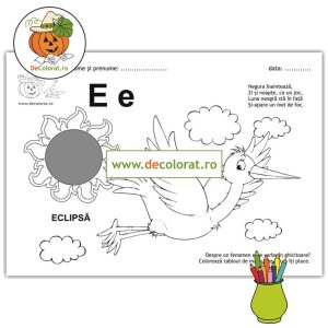 grupa mare – clasa pregătitoare | planșe de colorat litera E – fișa de lucru cu ghicitoare – fișe de trasare cu litere – poezie ghicitoare pentru eprubetă | poezii și ghicitori