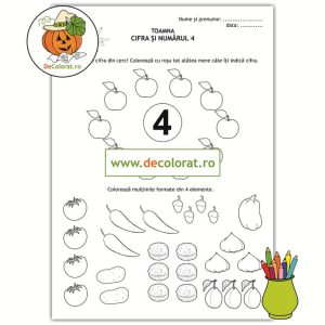 Numărăm și colorăm! – Să învățăm cifra și numarul 4!