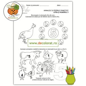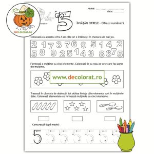 Numărăm și colorăm! – Să învățăm cifra și numarul 5!