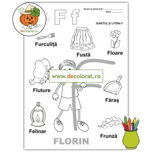 grupa mare – clasa pregătitoare | planșe de colorat litera F – fișă de lucru – fișe cu litere – fișe de lucru pentru activități ce au ca tema litera F – litera F în imagini – litera F mare și f mic – F de la fluturaș