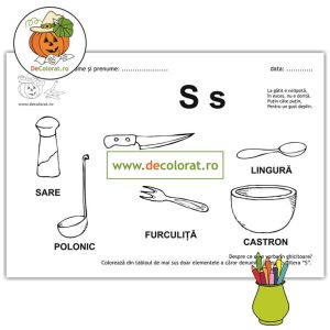 Fișă de lucru pentru recunoașterea și învățarea Literei și a Sunetului “S” și de colorat. “S” de la sperietoare!