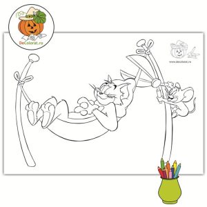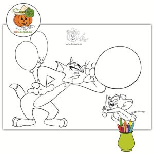 – desene de colorat pentru copii preșcolari cu personaje din desene animate – Tom și Jerry